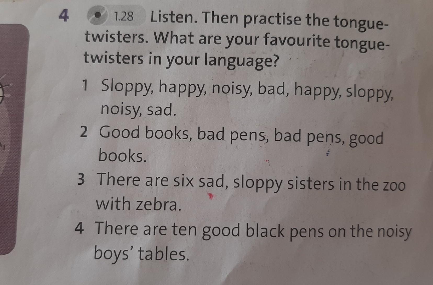 ОTвеT: 1 Sloopy,happy,noisy,bad,happy