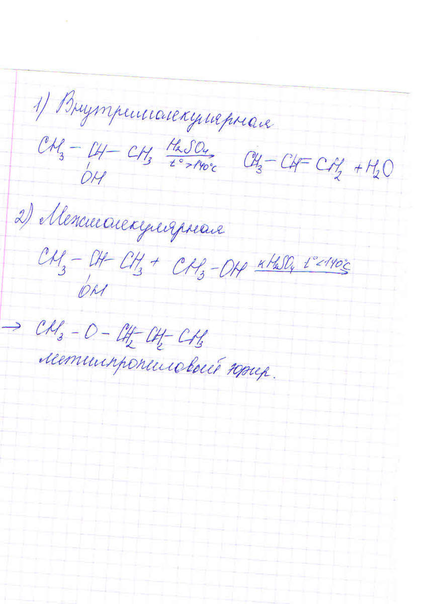 напишите схемы реакций внутри и межмолекулярной дегидратации пропанола. Пожалуйста