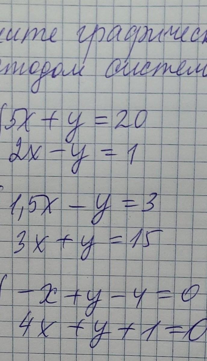 5x+y=20 1,5x-y=3 -x+y-4=0