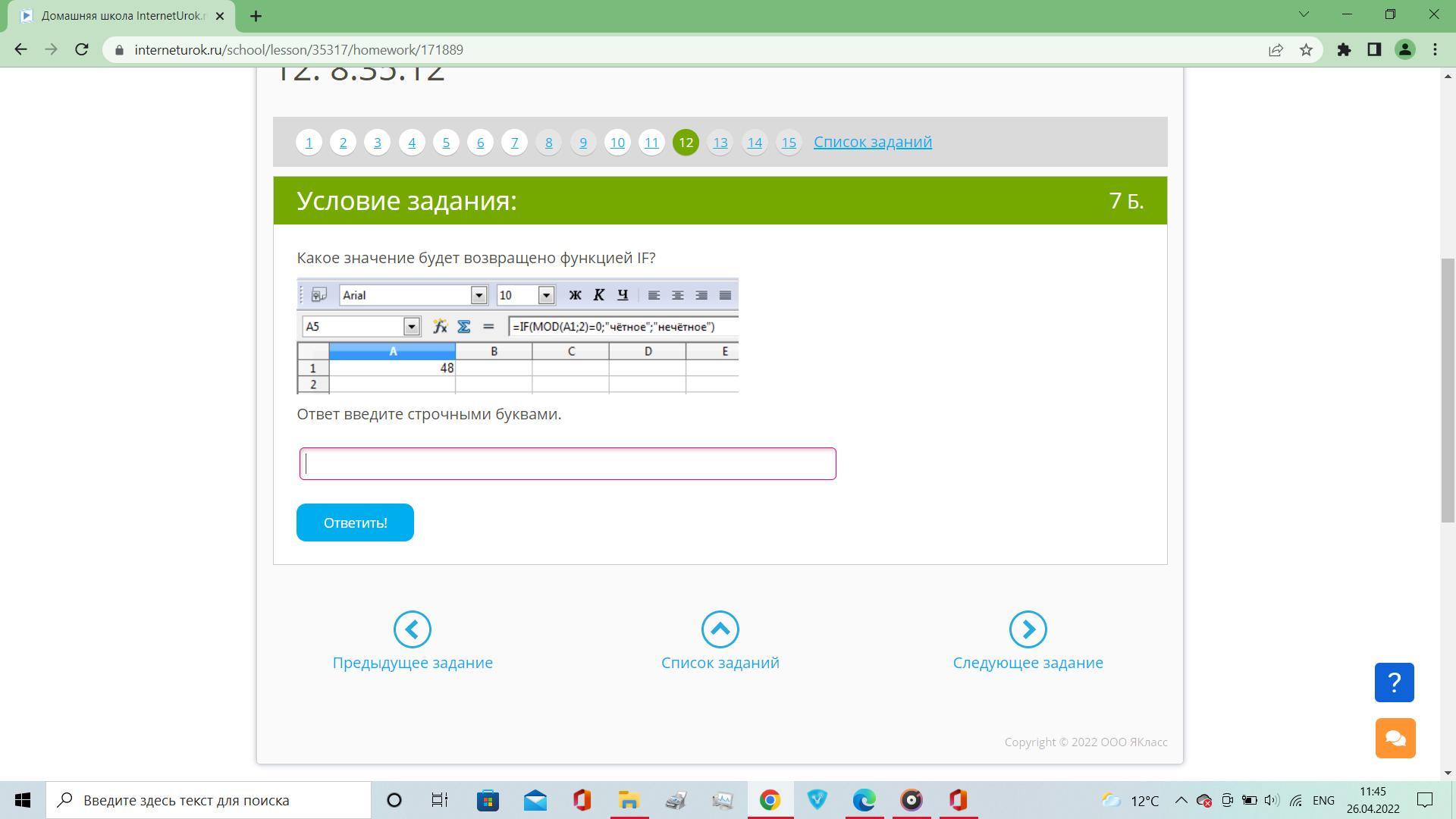 А в 15вопросе у тебя 48 6?Если да то можешь помочь какой ответ там