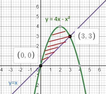 Прежде всего строим графики функций y = 4x - x² и у = х