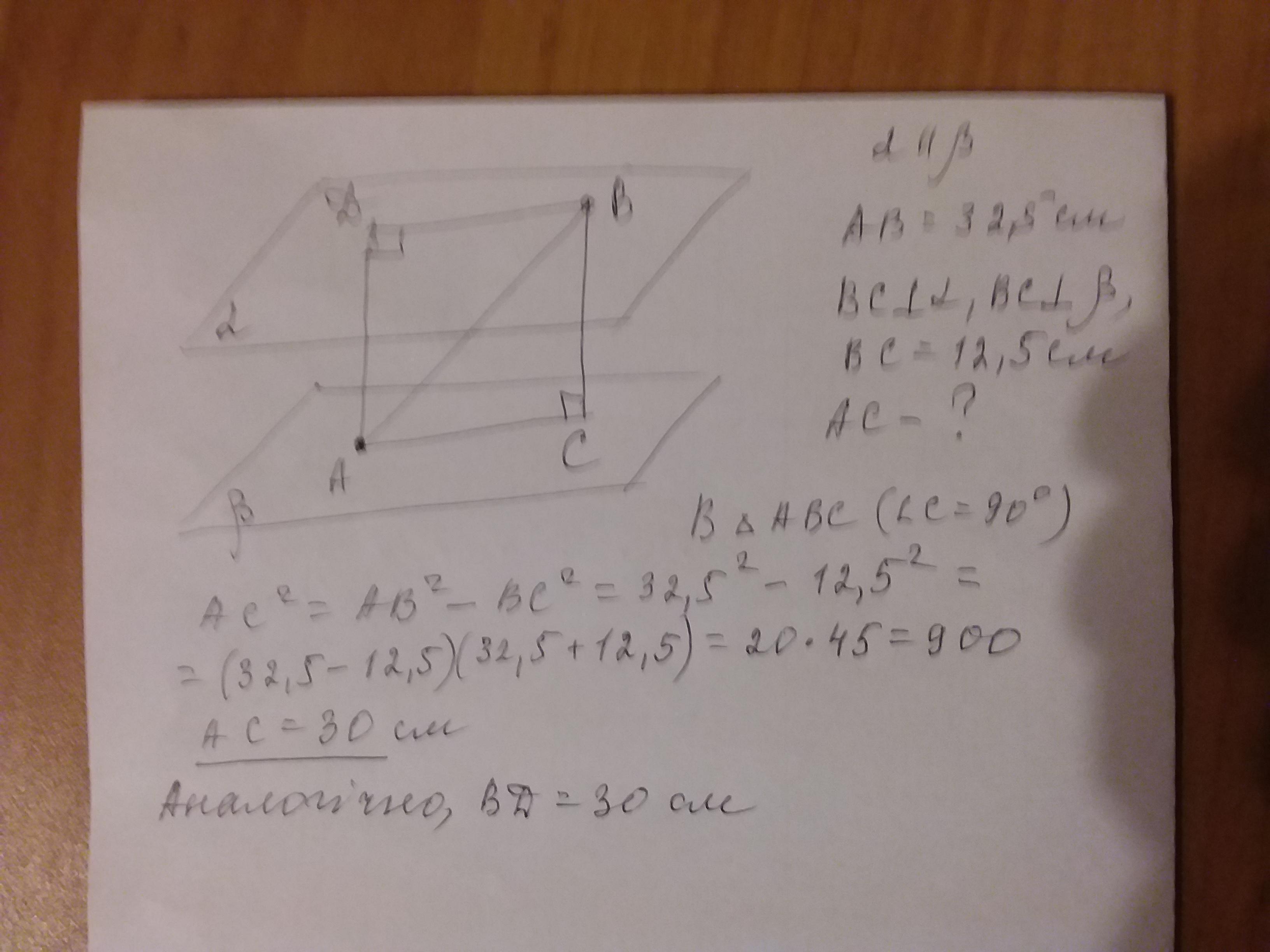 Між двома відрізки які своїми кінцями упираютьсяв ці площини. Сума довжин цих відрізків дорівнює 24,2 см, а їх проекції на одну з площин дорівнює 2 см і 14 см. Обчисліть відстань між площинами