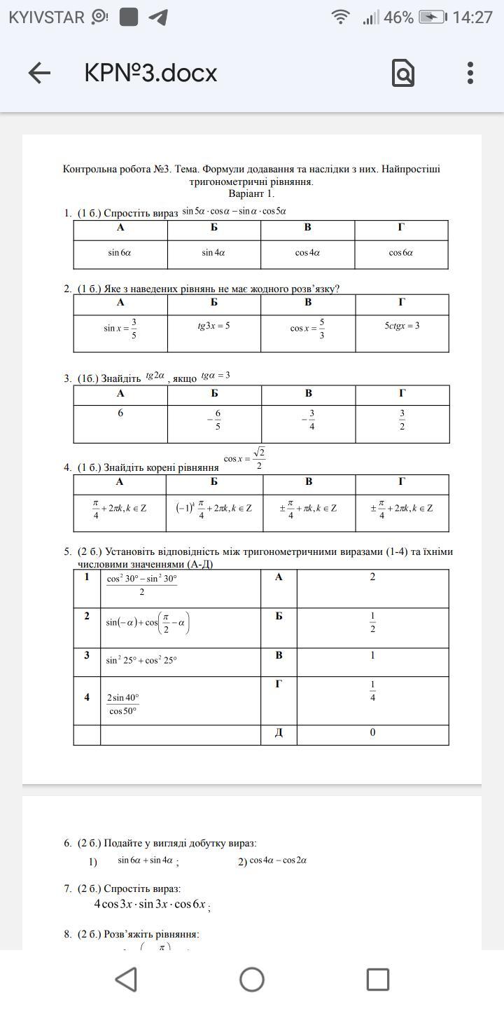 Жодного розв'язку не має рівняння в. cosx=5/3,6o 5/3>1,a