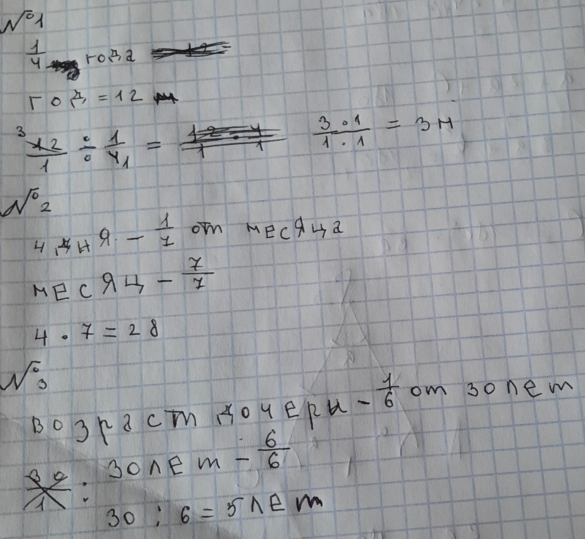 3) Маме 30 лет. Возраст дочери составляет шестую часть возраста матери. Сколько лет дочери?