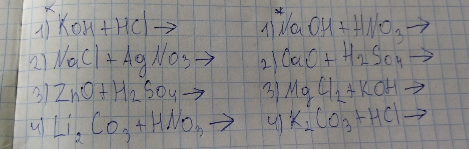 3) ZnSO4 + H2O 3) Mg(OH)2 + KCl