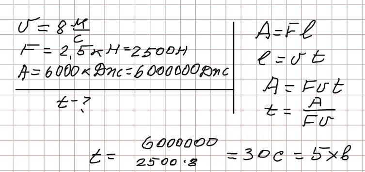 буксир здійснив роботу 6000 кДж? Відповідь подати в хвилинах. Допоможі будь ласка, даю 100 балів.