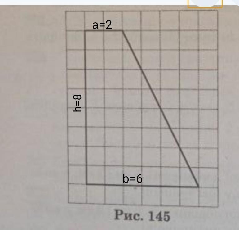 знайдіть площу трапеції,зображеній на рисунку якщо сторона однієї клітинки дорівнює 0.5 см