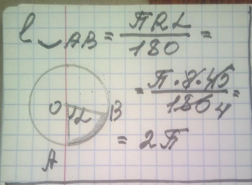 Обчисліть довжину дуги кола радіуса 8см яка відповідає центральному куту 45 градусів