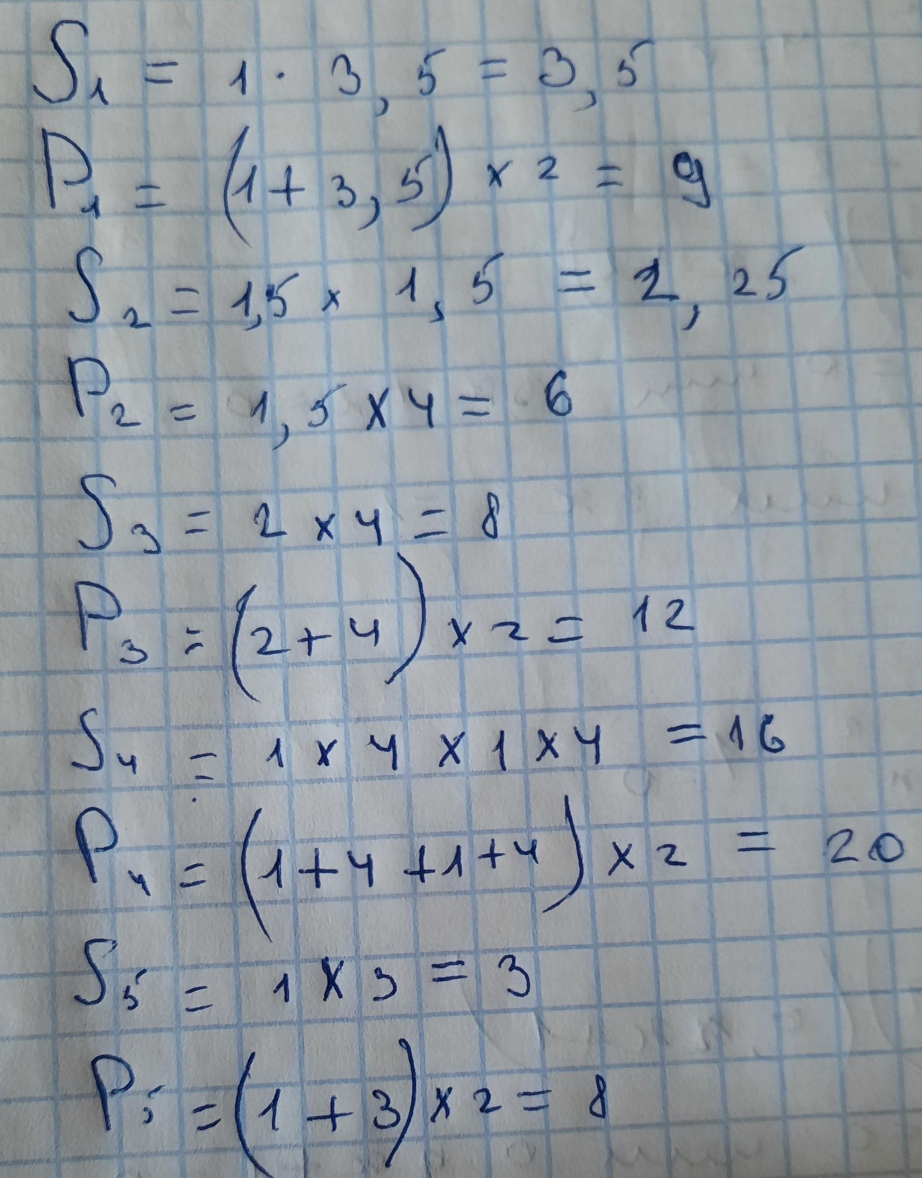 найди площадь и периметр каждой из фигур, данные на рисунке
