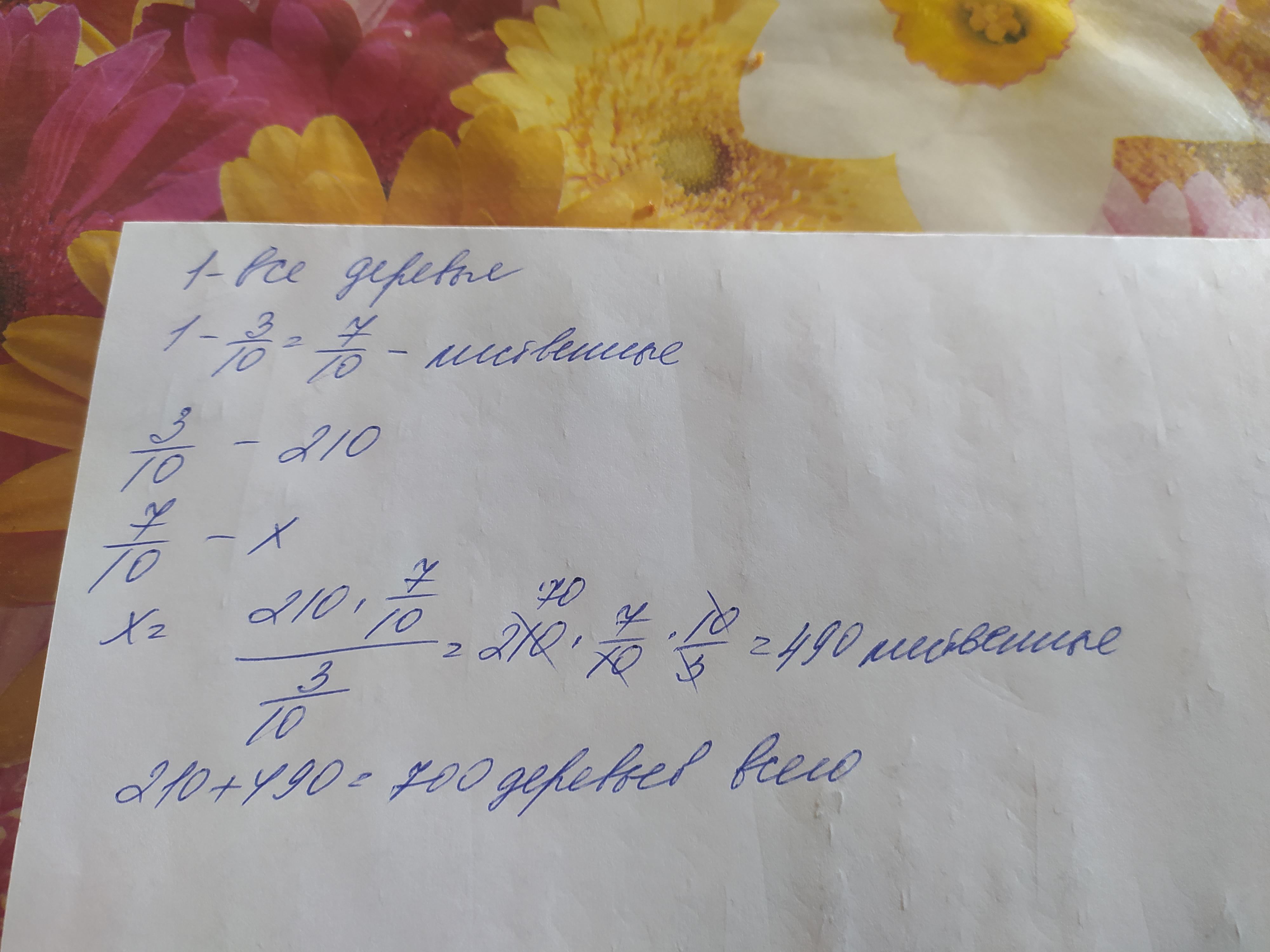 В парке лиственные и хвойные деревья,причем хвойных 210,что составляет 3/10 всех деревьев. Сколько всего деревьев в парке?