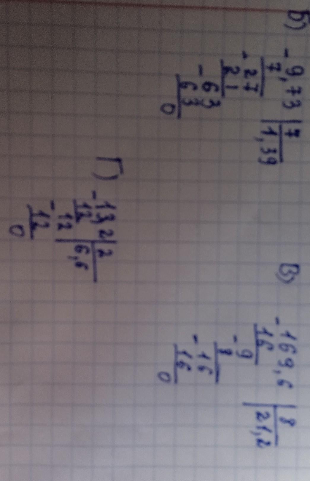 1. Виконай ділення. Б) 9,73:7; B) 169,6 : 8; Г) 13,2 : 2.
