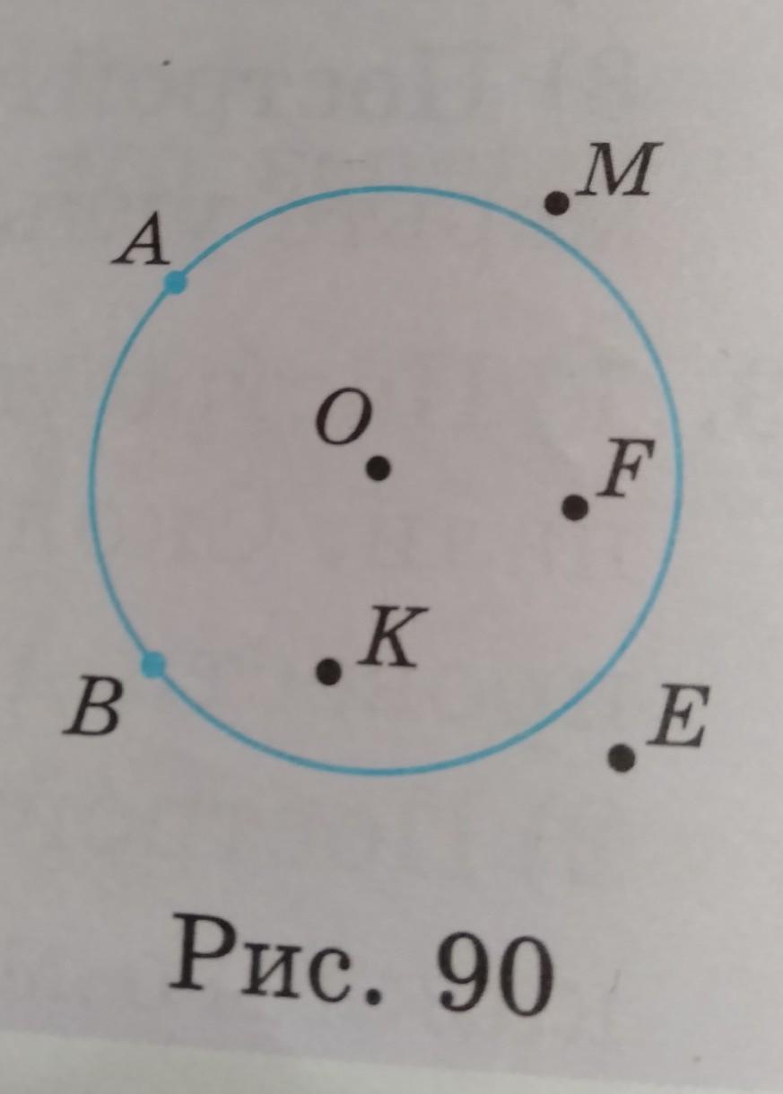 Укажите из изображенных на рисунке 90 точки, которые принад- лежат: 1) окружности; 2) кругу. помогите пж