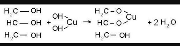 Cu(OH)2 + C3H5(OH)3 = C3H5OHCuO2 + 2 H2O.