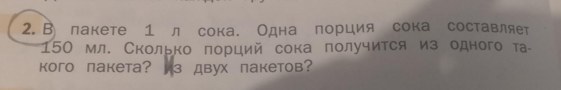 2000/150=13.3 следовательно из двух пакетов получится 13 полных порций