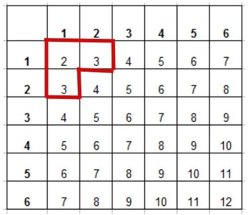 На соревнованиях проводят забег «Рандом». Его отличие в том, что дистанцию состязания определяют с помощью броска двух шестигранных кубиков. Одна точка на кубике равна 200 м. Какова вероятность, что выпадет дистанция 600м и меньше?