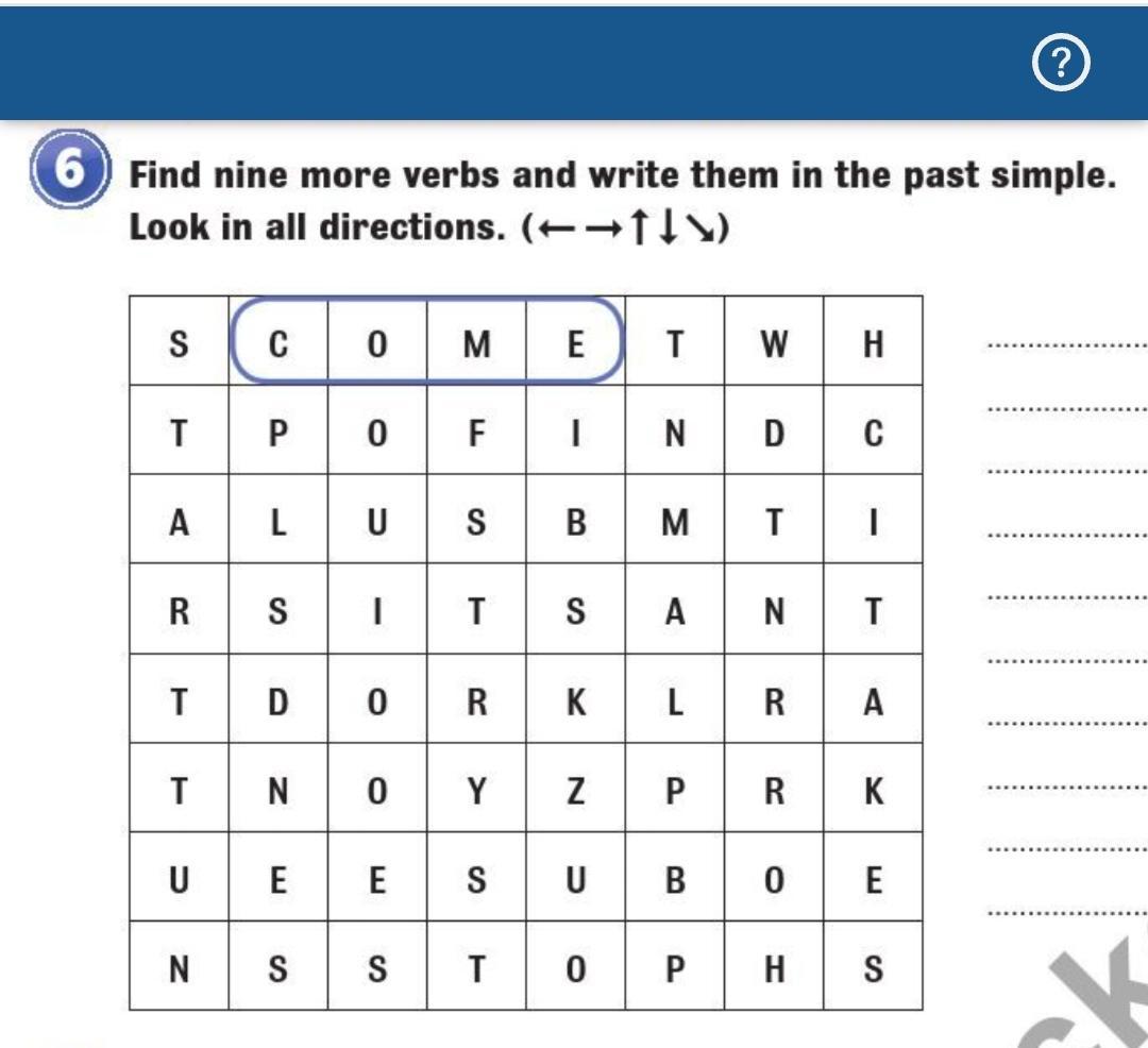 Find nine more verbs and write them in the past simple . Look in all directions. Нужно найти слова и записать в past simple. Очень срочно , дам 45 баллов