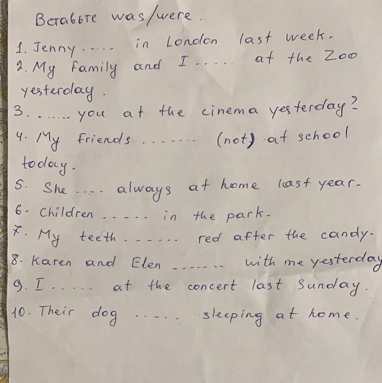 1-was 2-were 3-was 4-were 5-was 6-were 7-was 8-were 9-was 10-was