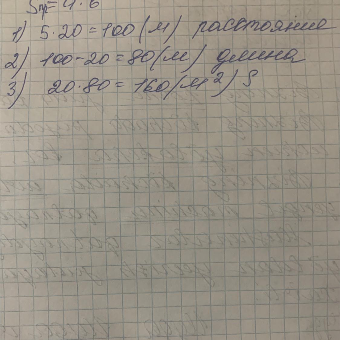 Найдите площадь огорода прямоугольной формы, если сторож обходит его за 5 минут со скоростью 20 м/мин. Ширина огорода 20 м