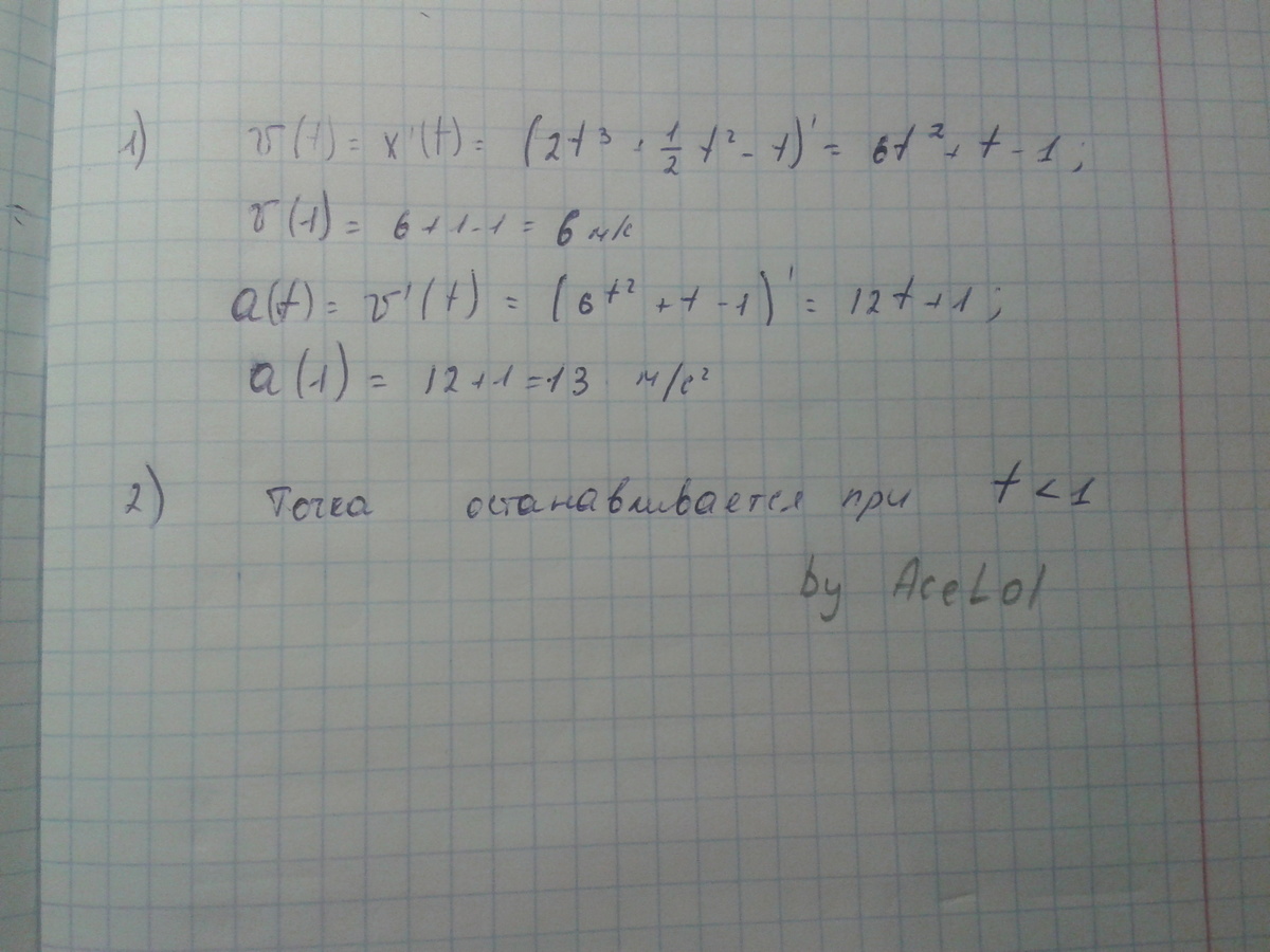 точка движется прямолинейно по закону 1)x(t)2t^3+1/2t^2-t