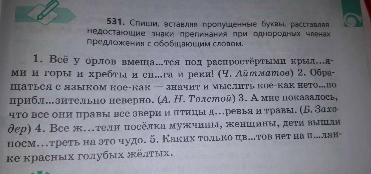 Спиши, вставляя пропущенные буквы, расставляя недостающие знаки препинания при однородных членах предложения с обобщающим словом.