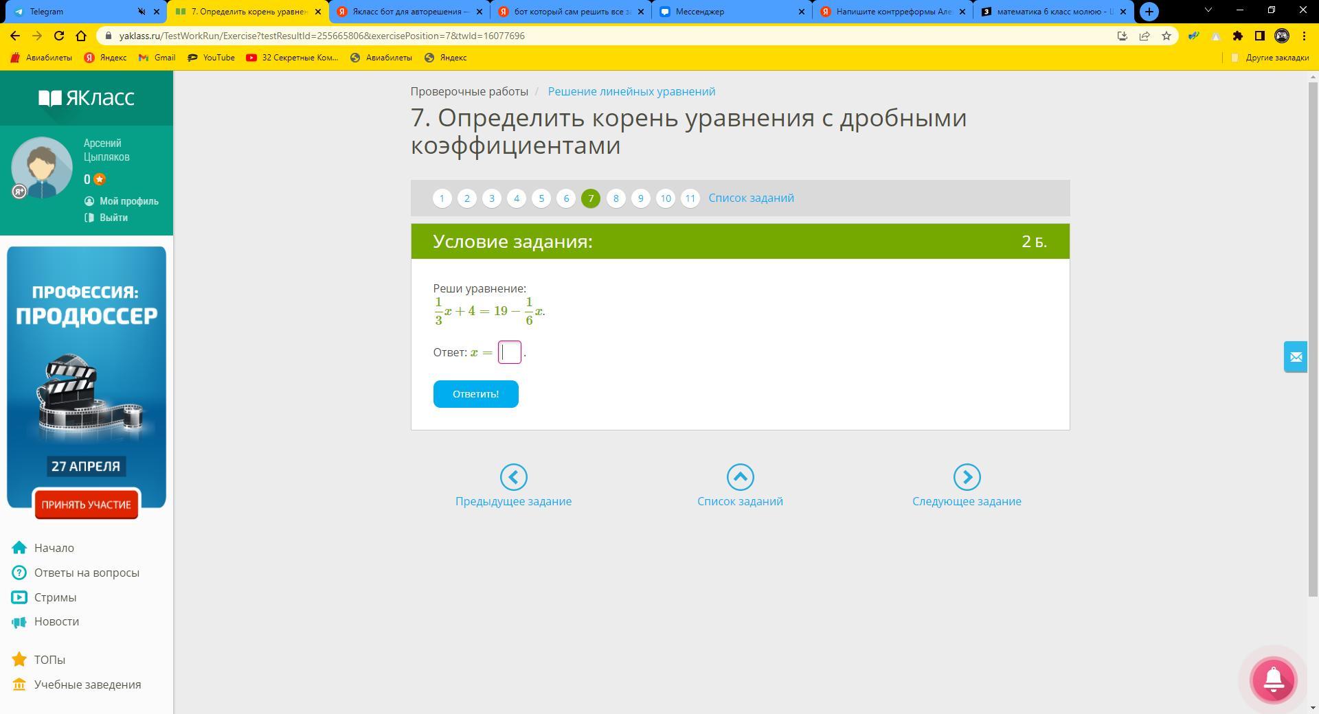 если ты про 1/2 то 1/3+1/6=3/6, сокращаем и получаем 1/2