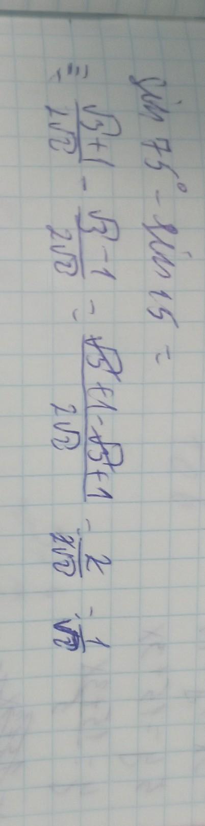 sin 75° - sin 15° = 0,966 - 0,259 = 0,707