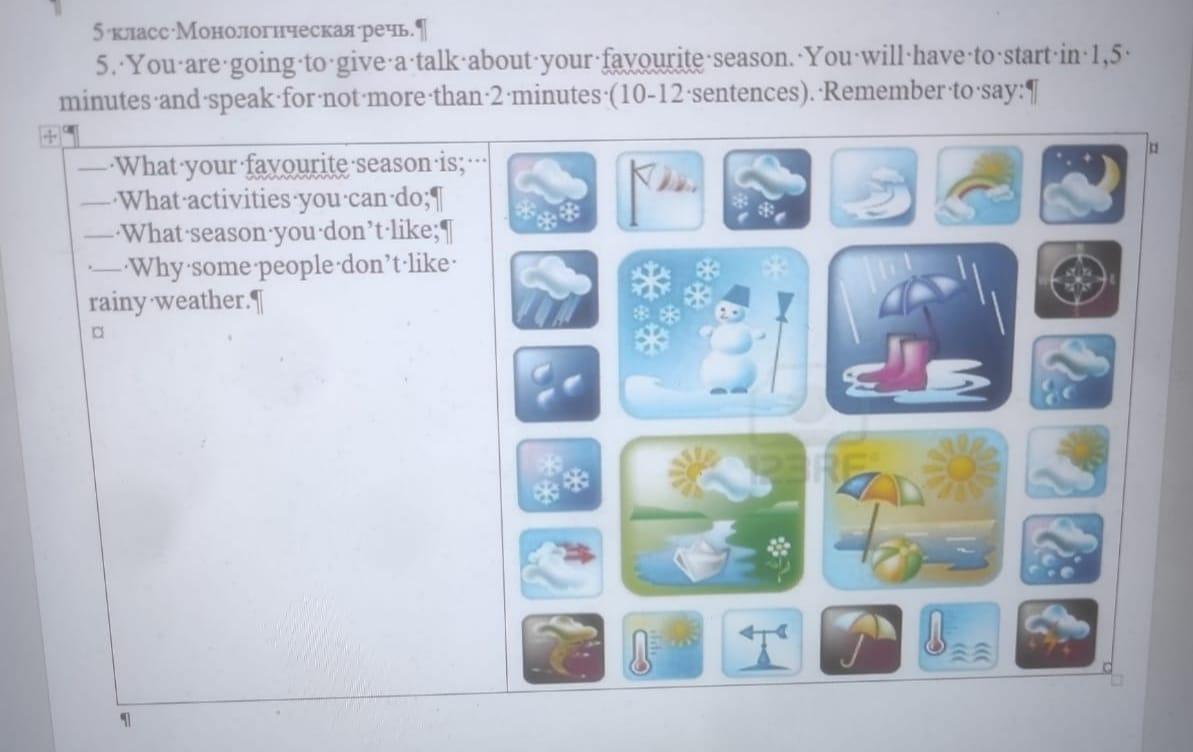 My favorite time of the year is summer. Because it's very warm here in summer. I can ride a bike, swim in the river, in the sea or on the lake. Most of all I don't like winter! Because when the snow melts, there is a lot of slush and it is very cold! To be honest, I love the rain. Especially in summer, because it's always fresh and cool after the rain. But why do some people dislike rain? I think that after the rain they do not want to step into puddles, or they may be cold, or they are very damp outside!