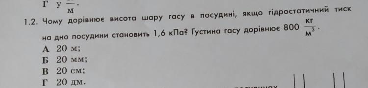 h=p/(ρ*g)=1600/(800*10)=0.2 м (20 см)
