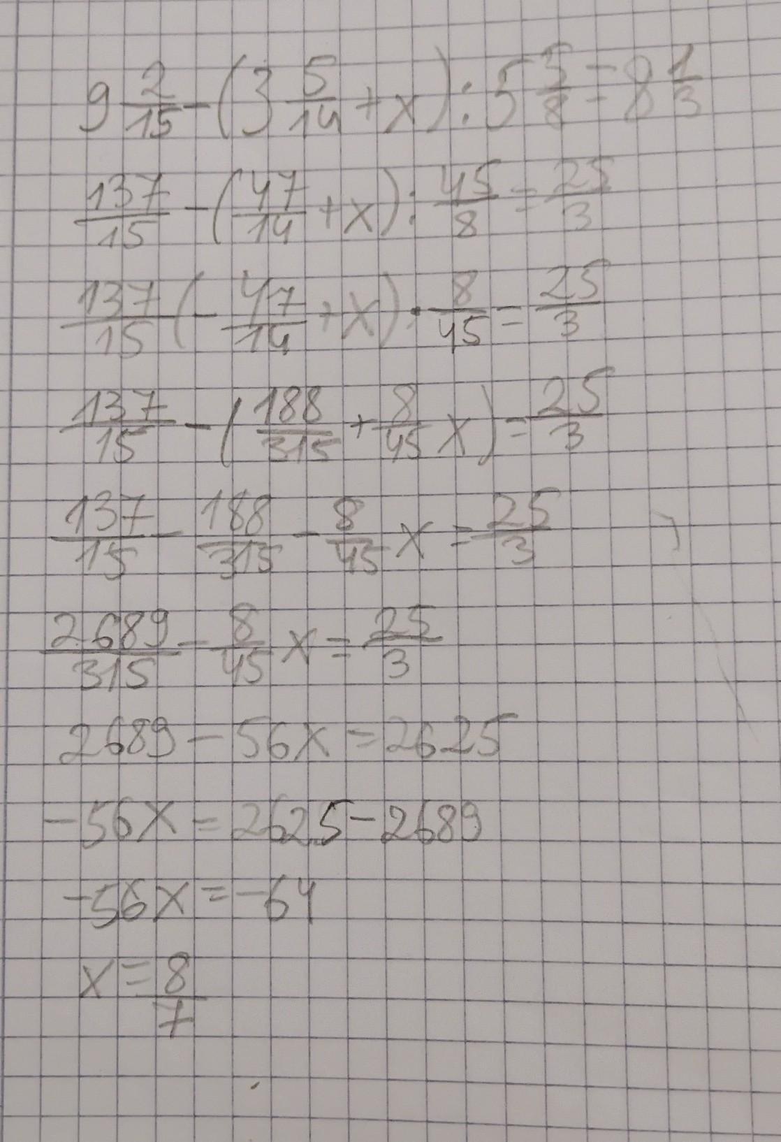 у другому: х= 8/7