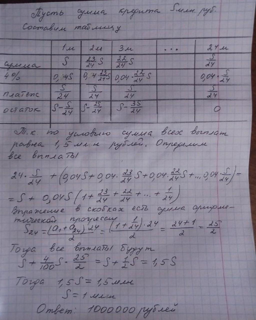 • 15-го числа n-го месяца долг составит 300 тысяч рублей;