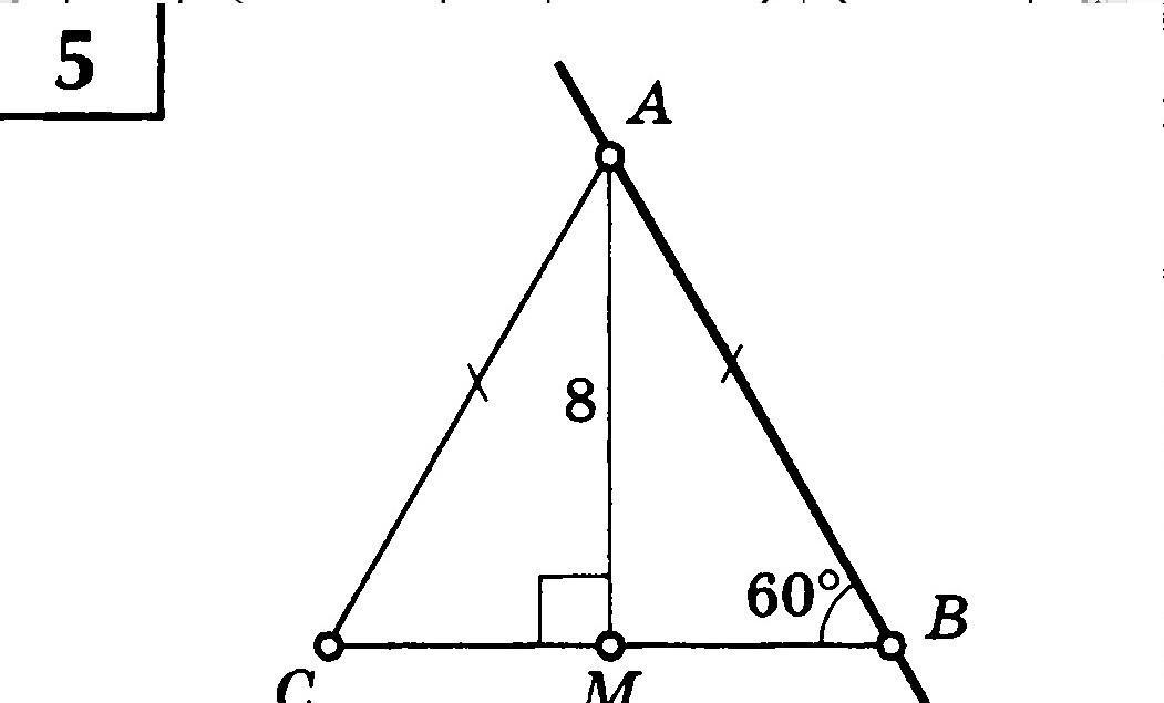 т.к. дан равносторонний треугольник, что следует из того что АС=АВ, значит. углы С и В равны как углы при основании равнобедренного треугольника, но они равны по 60°, а сумма углов треугольника равна 180°, получается, что и угол А равен 60° т.е. треугольник равносторонний, в нем высота АМ= 8 см, и т.к. она равна АВ√3/2, то сторона в этом треугольника находится из условия АВ√3/2=8, значит, АВ=16*/√3=16√3/3, МВ=АВ/2=8√3/3, т.к. это катет, лежащий против угла в 30° в прямоугольном треугольнике АВМ, , используя свойства пропорциональных отрезков в прямоугольном треугольнике АМВ, находим проекцию МВ на гипотенузу из условия