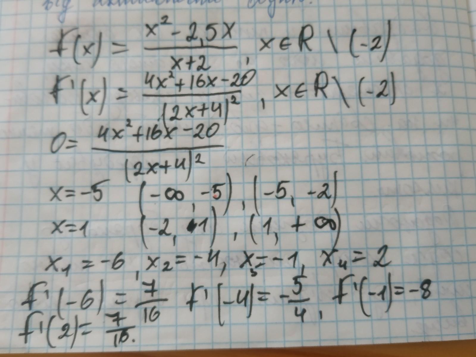f(x) = (x^2 - 2,5x) / (x + 2)