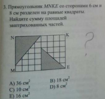 Сумма площадей заштрихованных частей равна 18. (Ответ: В)