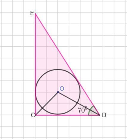 т. О центр кола вписаного в прямокутний трикутник DCE з гіпотенузою DE, в якому кут CDE=70 градусів Знайти: градусну міру кута СOD