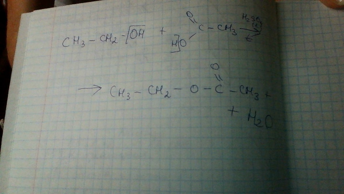 этиловый спирт+ уксусная кислота=сложный эфир(этилацетат)