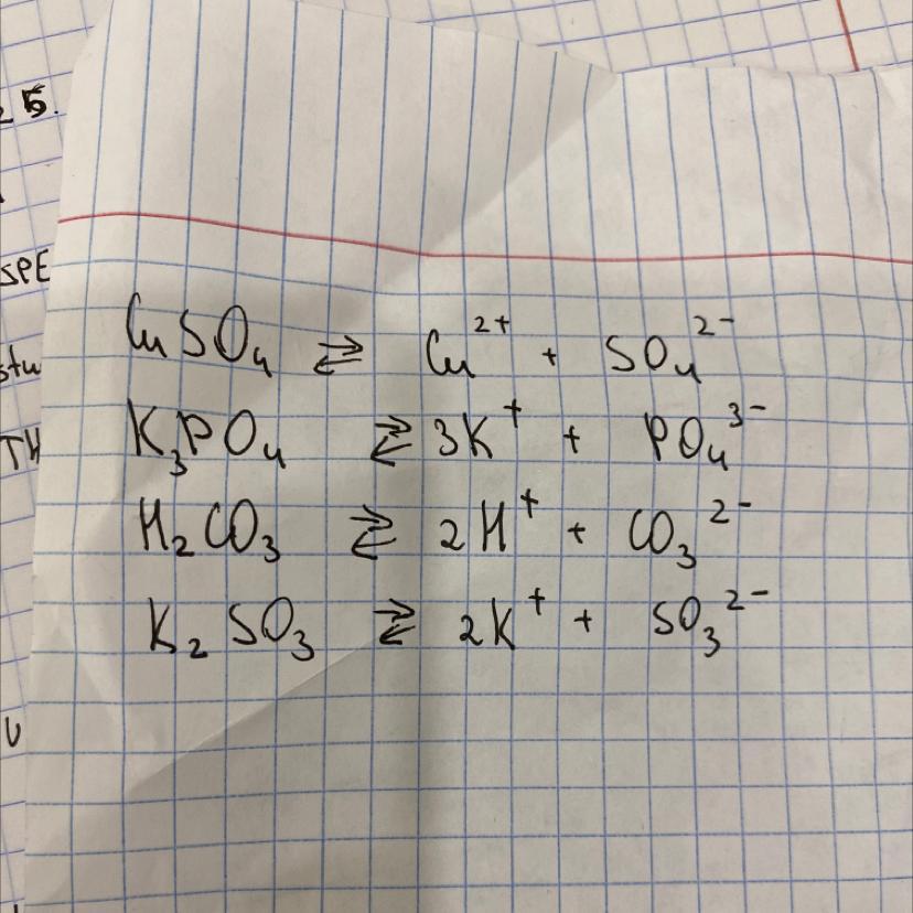 даны вещества: оксид натрия, сульфат меди (II), фосфат калия, метан (СН4), углекислый газ, угольная кислота, сульфит калия. Какие из перечисленных веществ будут диссоциировать? Составьте уравнение диссоциации.