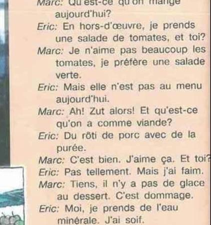 Марк: Жё нэм па боку лэ томат, жё префэр юн салад вэрт.