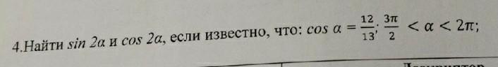 найдите синус 2 альфа и косинус 2 альфа, если известно что косинус альфа 12/13; 3пи/2 < альфа < 2пи
