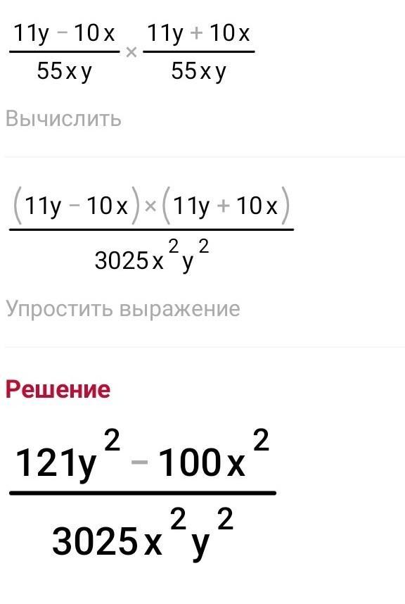 выполни умножение ( 1/5 x - 2/11 y)* ( 1/5x +2/11 y)