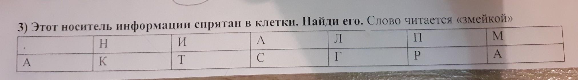 3) Этот носитель информации спрятан в клетки. Найди его. Слово читается «змейкой»
