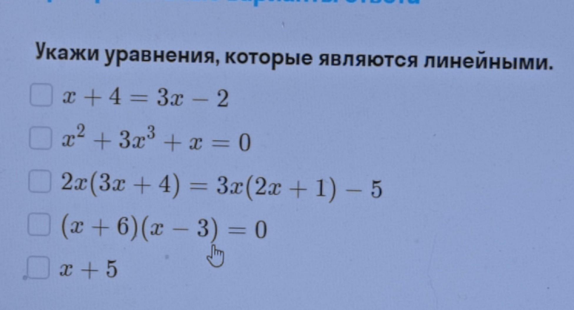 x+4=3x-2 и 2x(3x+4)=3x(2x+1)-5