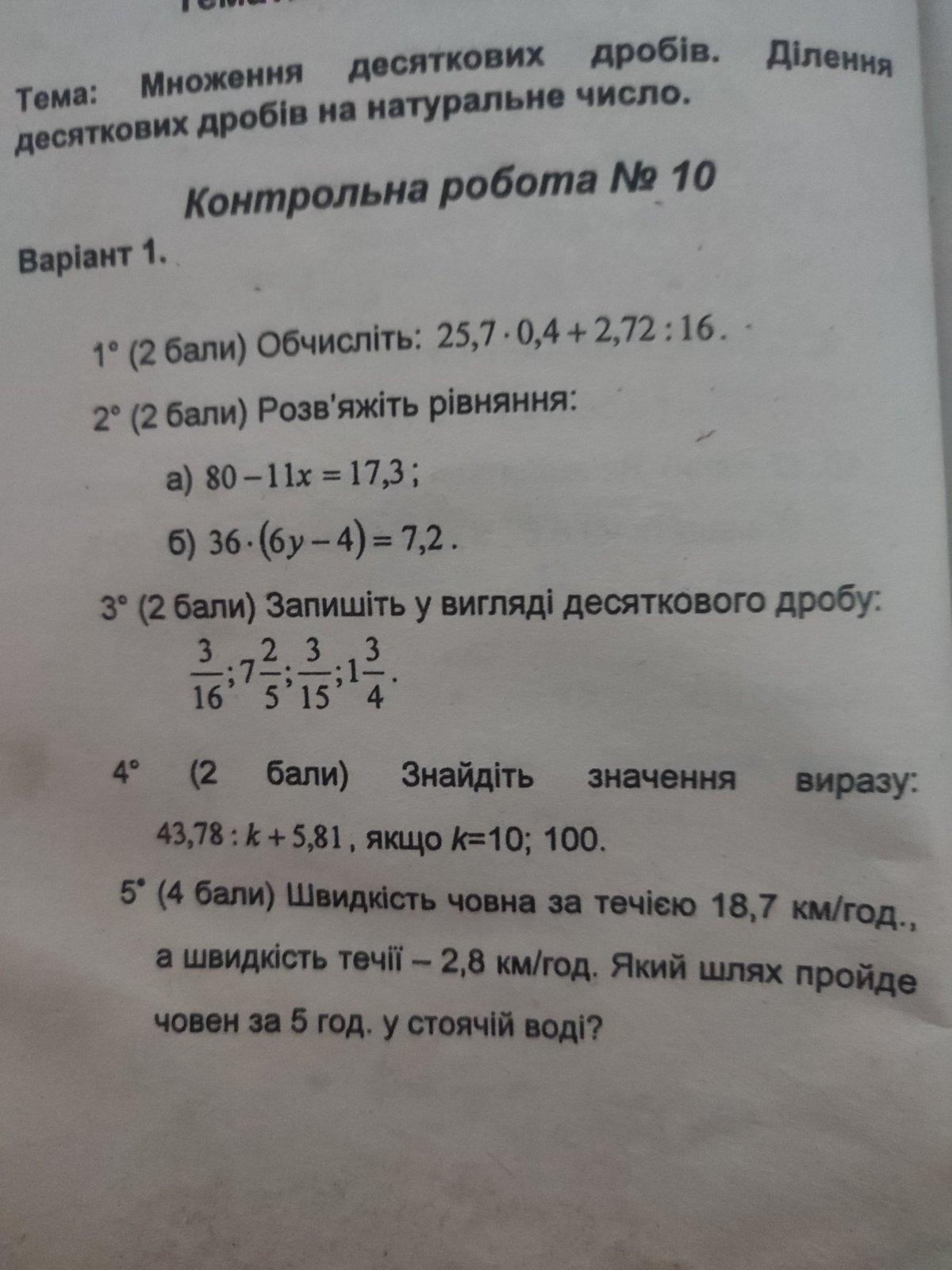 Це контрольна допоможіть будь ласка желательно по діям і в стовпчик