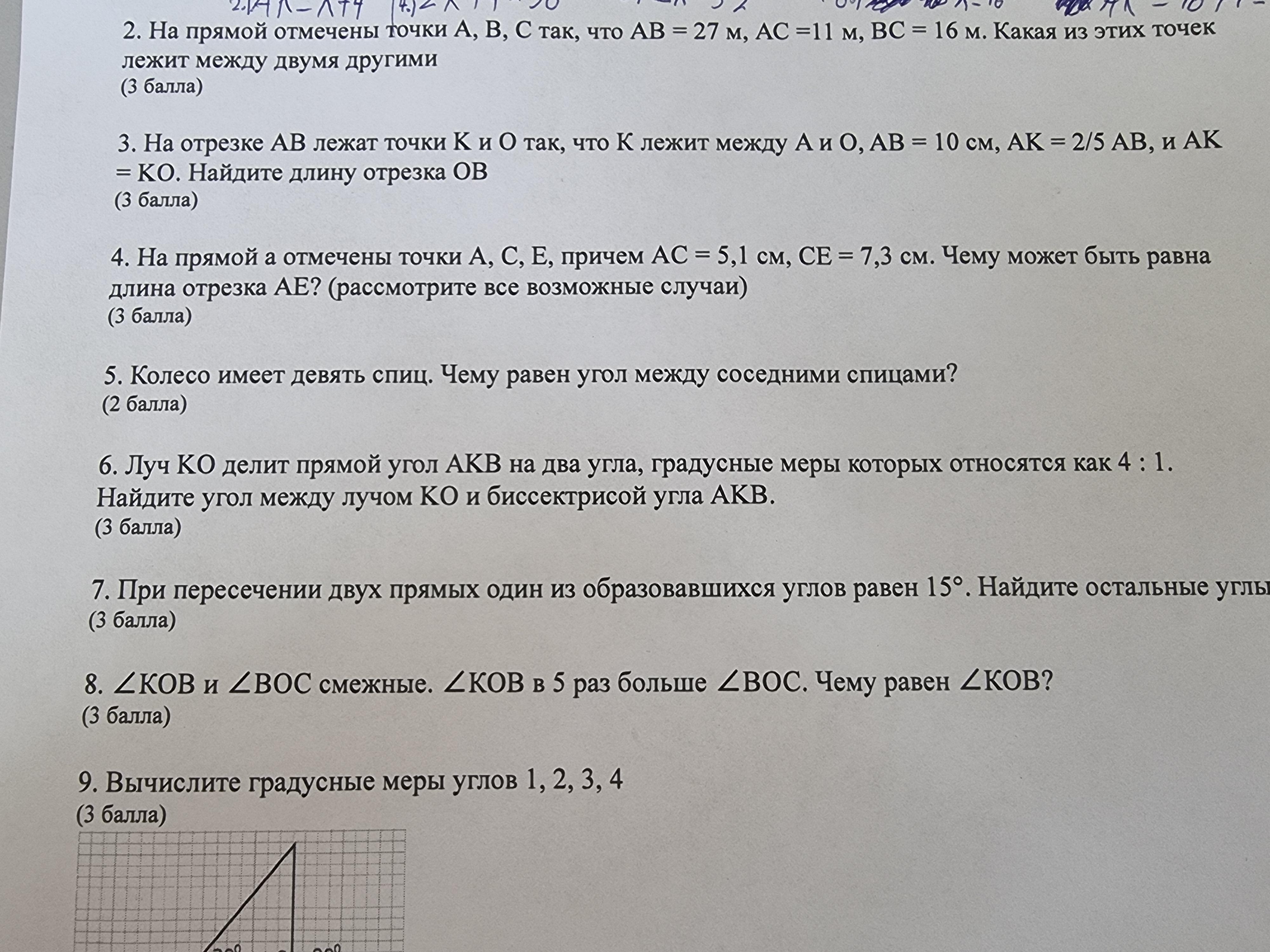 7) у двух пересекщихся прямых вертикальные углы равны, сумма смежных 180° ,получаем 180-15=165