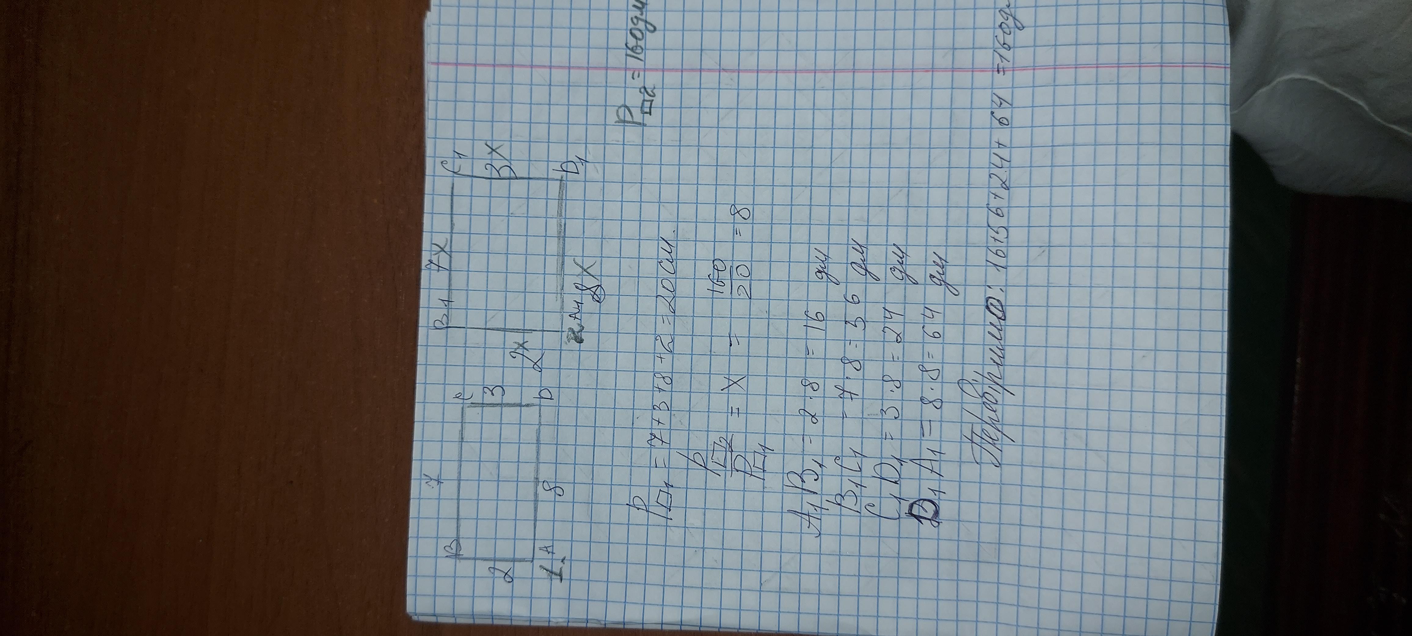 Сторони чотирикутника дорівнюють 7м, 8 м, 3 м і 2 м. Знайдіть сторони подібного йому чотирикутника, периметр якого дорівнює 160 дм.