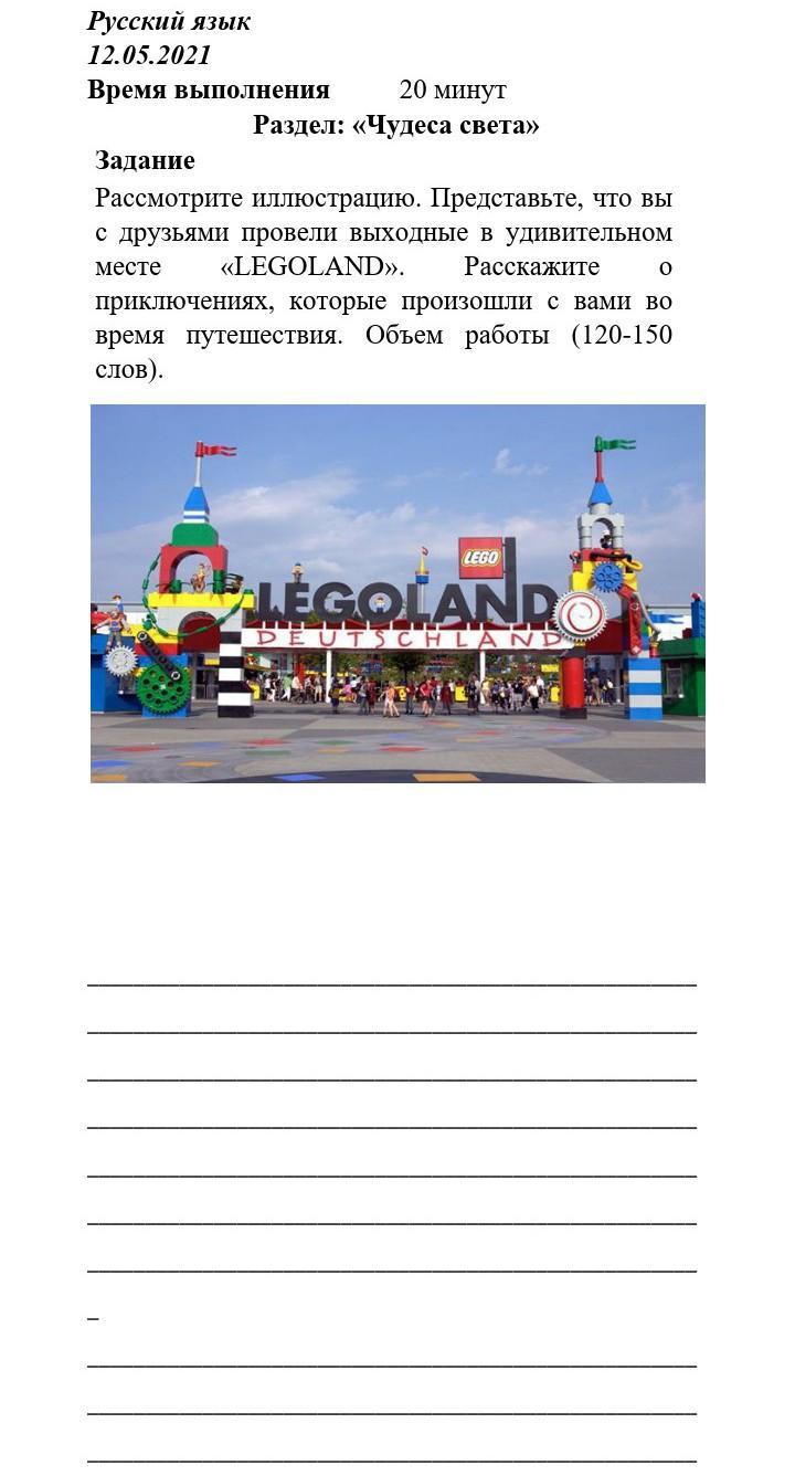 Задание Рассмотрите иллюстрацию. Представьте, что вы с друзьями провели выходные в удивительном месте «LEGOLAND». Расскажите о приключениях, которые произошли с вами во время путешествия. Объем работы (120-150 слов).