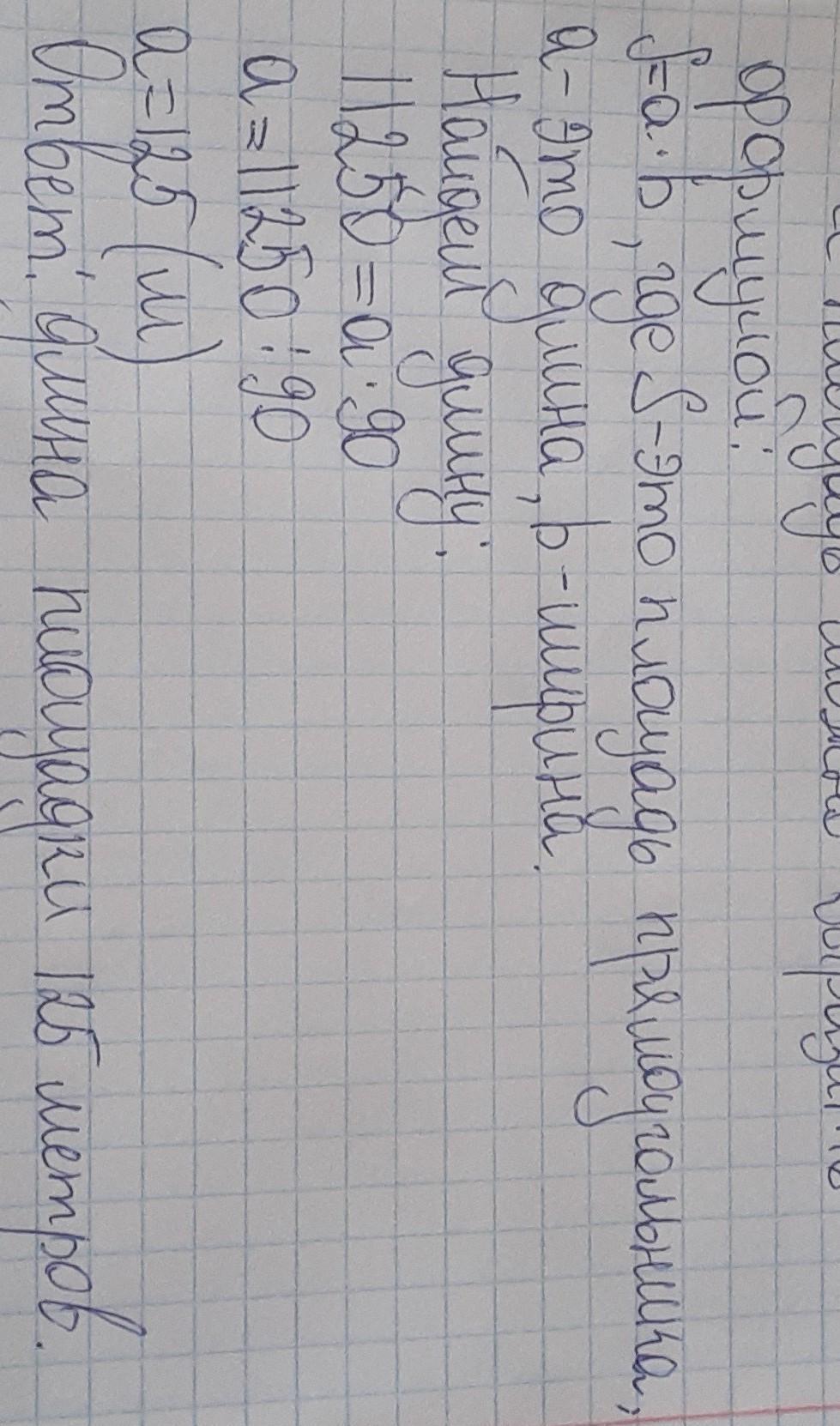 Помогите решить задачу заранее спасибо. Задача: школьная спортивная площадка прямоугольной формы имеет ширину 90м, а площадь 11250 м². Найдите длину плошадки.