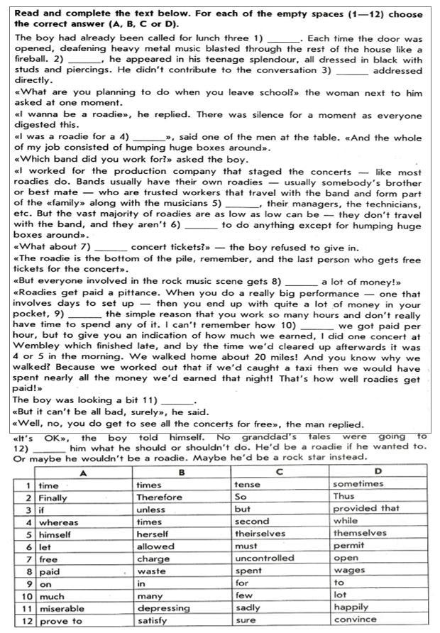 Read and complete the text below. For each of the empty spaces (1 -12) choose the correct answer (A, B, C or D).