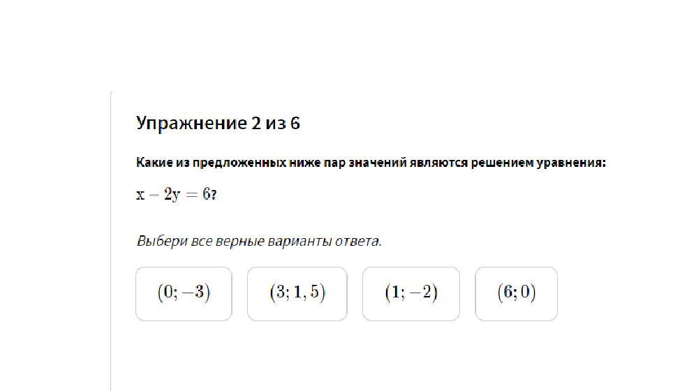 Пары (0;-3) и (6;0) являются решениями уравнения х-2у=6, т.к.