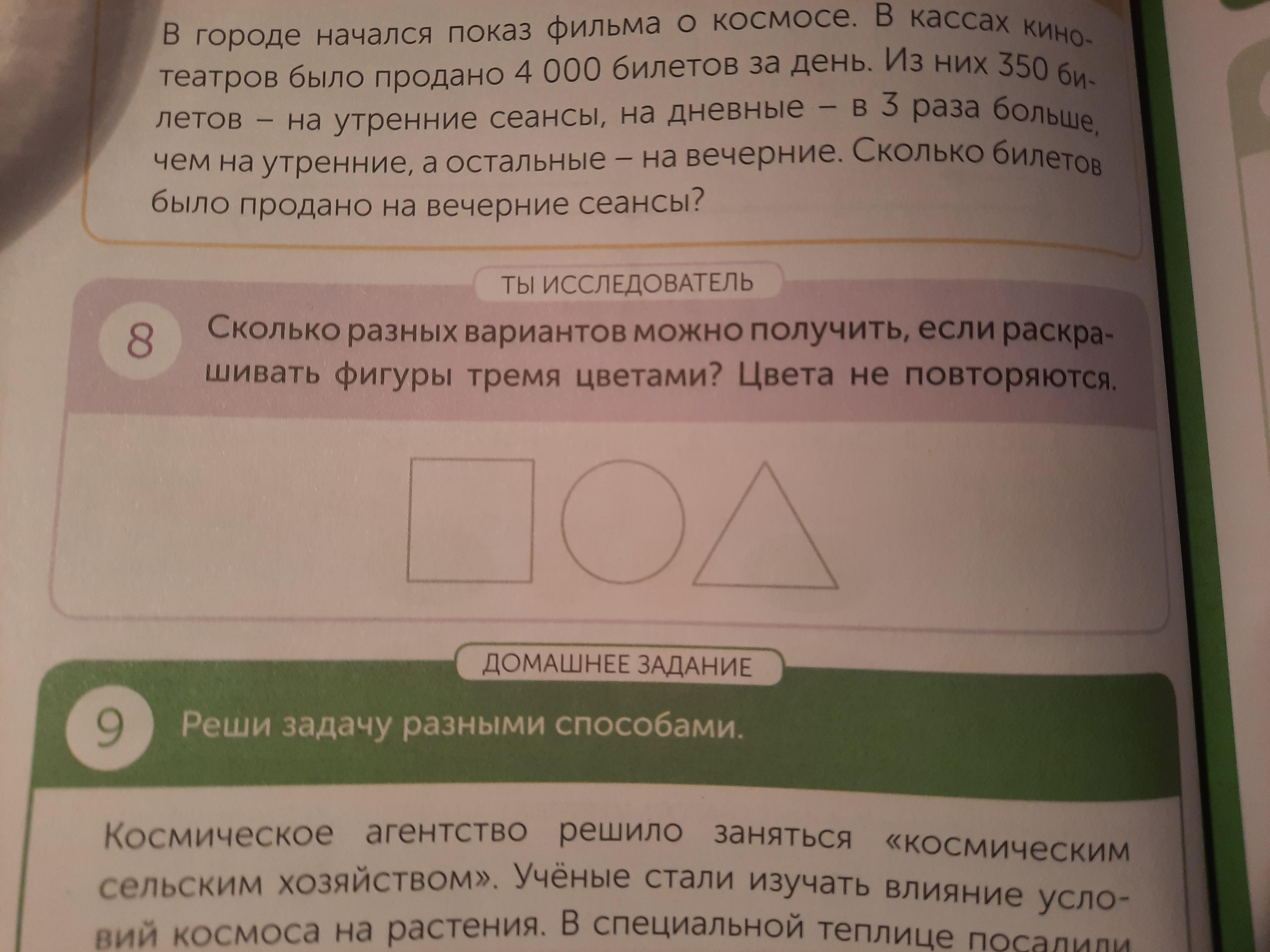 сколько разных вариантов можно получить если раскрашивать фигуры тремя цветами? Цвета не повторяются/ даю 50 баллов