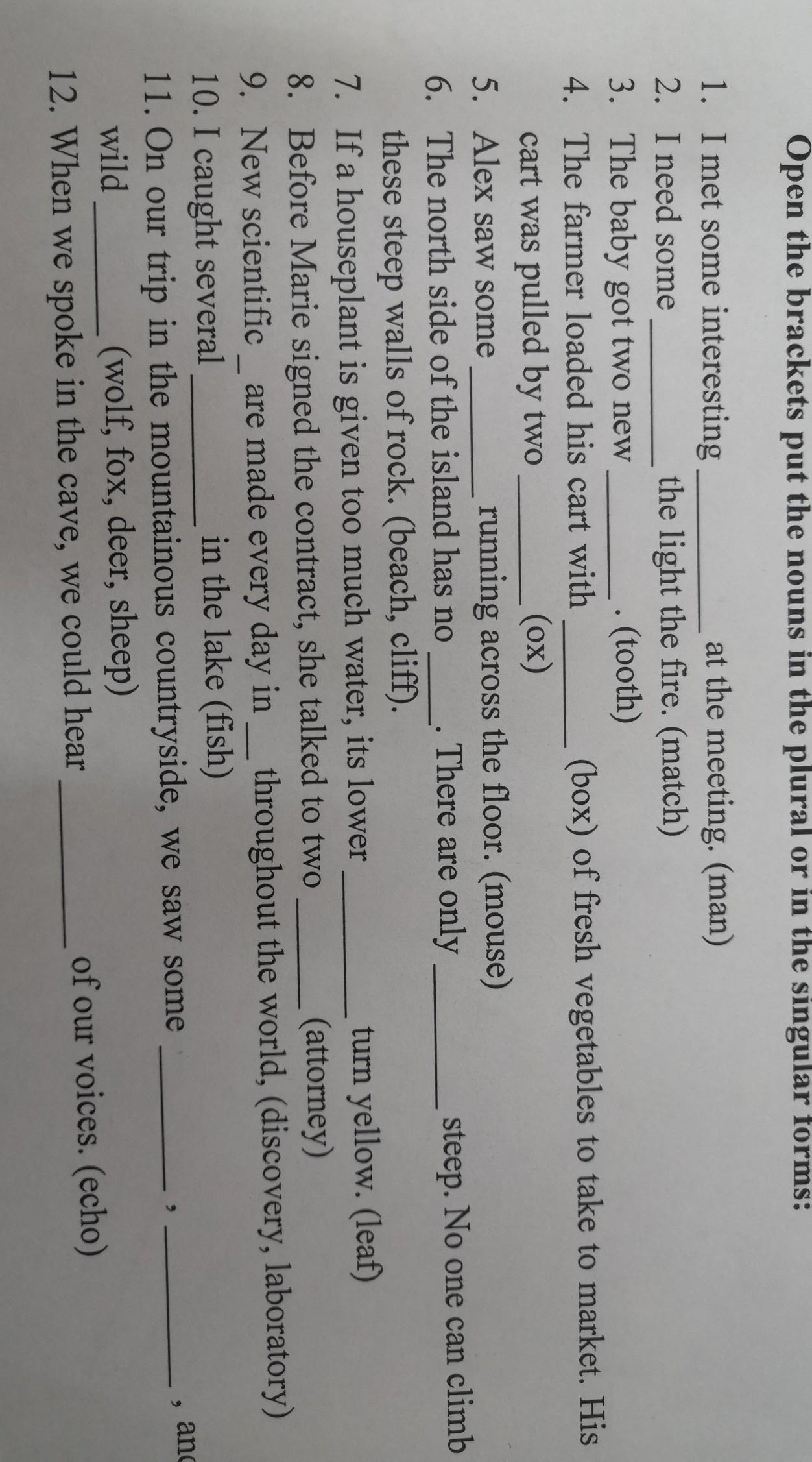 11.wolves, foxes,deer,sheep (последние 3 не изменяются во множественном числе)